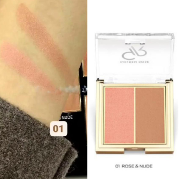 رژگونه گلدن رز یک پالت جمعوجور و کاربردی است که دو رنگ هماهنگ و جذاب را در یک محصول کنار هم قرار داده تا بتوانید بهراحتی آرایش گونهها را کنترل کنید. بافت پودری سبک و لطیف این رژگونه روی پوست کاملاً طبیعی مینشیند و بدون ایجاد خطوط یا لکه، جلوهای یکدست و مخملی به پوست میدهد.